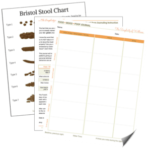 If you’d like to give the Food-Mood-Poop journal a try you can go ahead and use any notebook you have hanging around the house or you can download my fillable Food-Mood-Poop Journal form. You’ll also get a page with directions and a Bristol Stool Chart for poop referencing.