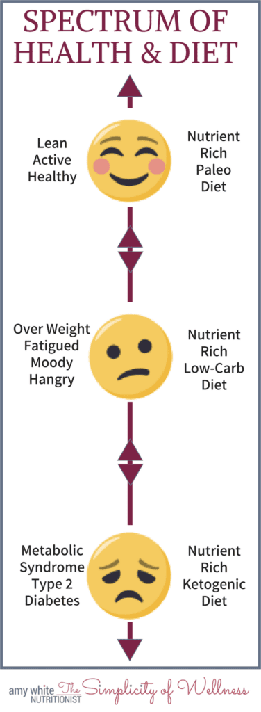 Where you fall on the spectrum of health will help determine which lifestyle might suit you the best. Watch for my next blog post where I discuss more about the difference between a ketogenic lifestyle and a low-carb lifestyle and why one may be better for you than the other.
