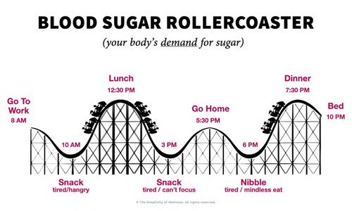 - Couple hours after lunch brain fog setting in, tired, cranky, need a snack